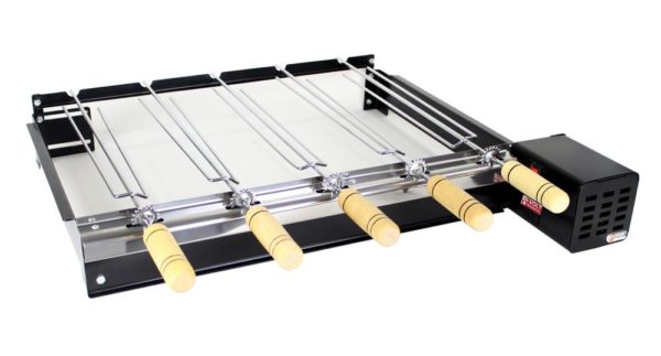 Produzido em aço carbono, com pintura eletrostática e grill giratório para 5 espetos.